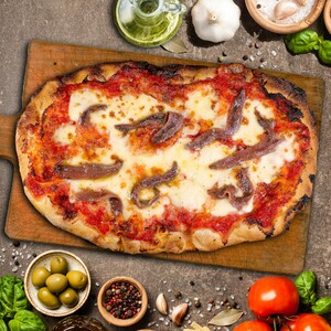Salsa di pomodoro, mozzarella, acciughe del Cantabrico
